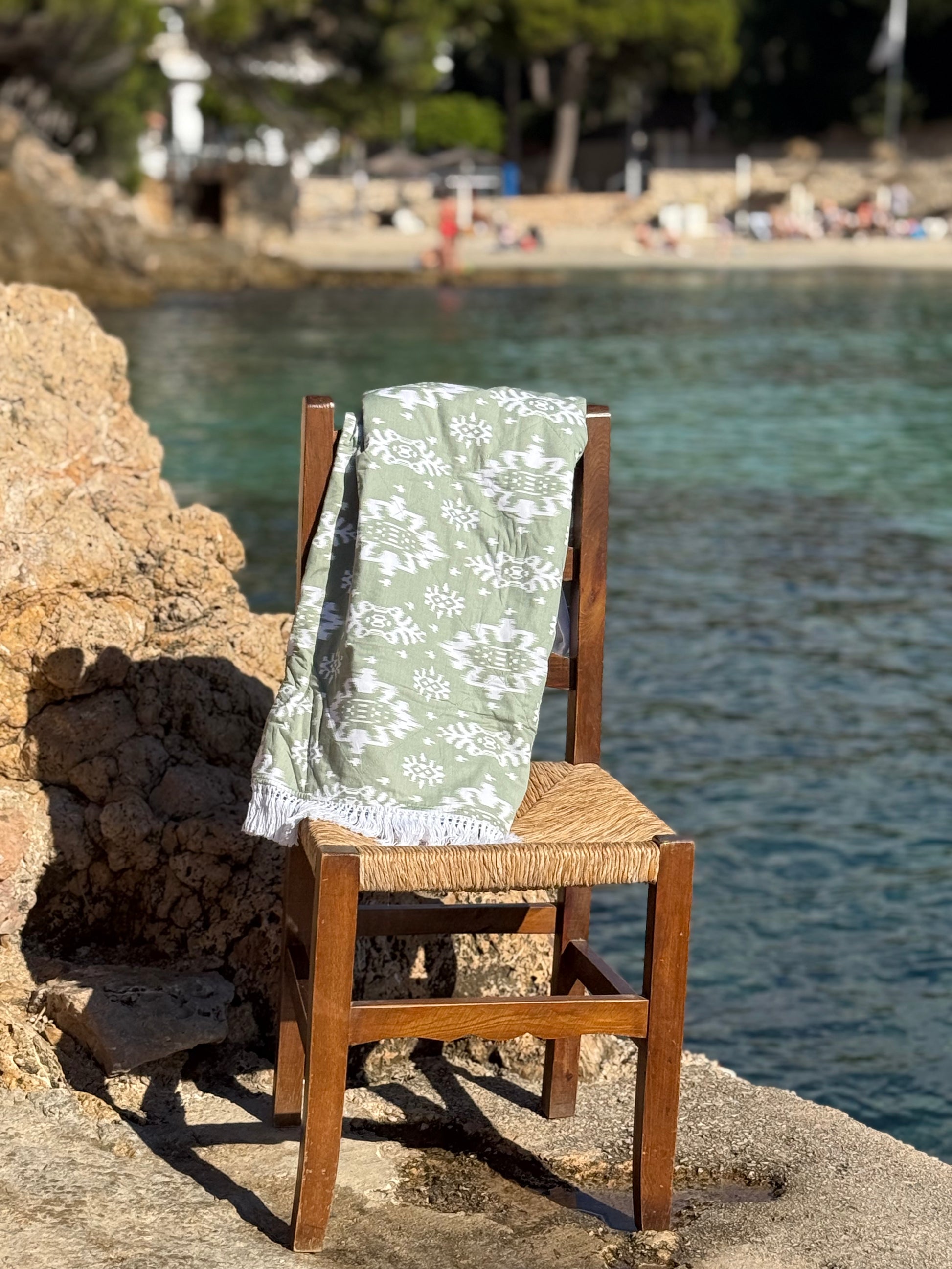 The signature GOLDNBROWN piece - the Dusty Sage GnB Towel balances form, function, and style with ease. A generous 1.7m x 1m, it is finished with cotton fringing and a crisp drill edge. One side carries our exclusive hand-blocked batik, the reverse a soft quick-dry towelling — joined with a secure diagonal smocking stitch that ensures strength, durability, and no shrinkage. Washed over and over, it softens beautifully with time, its craftsmanship evident in every detail. Crafted for every setting — by the beach, by the pool, in the bathroom, or simply hung at home.
